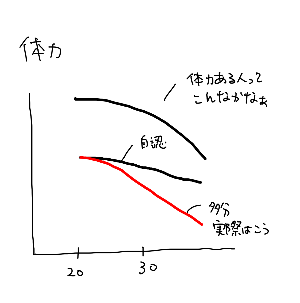 もともと体がそんなに強いわけではないので、なんとなく緩やかに体力が減少(ただしほとんど変わらない)するぐらいの自己認識でいましたが......そんなことはないんだよ!!!もう40も目前で20代と一緒なわけないんだよ!!!